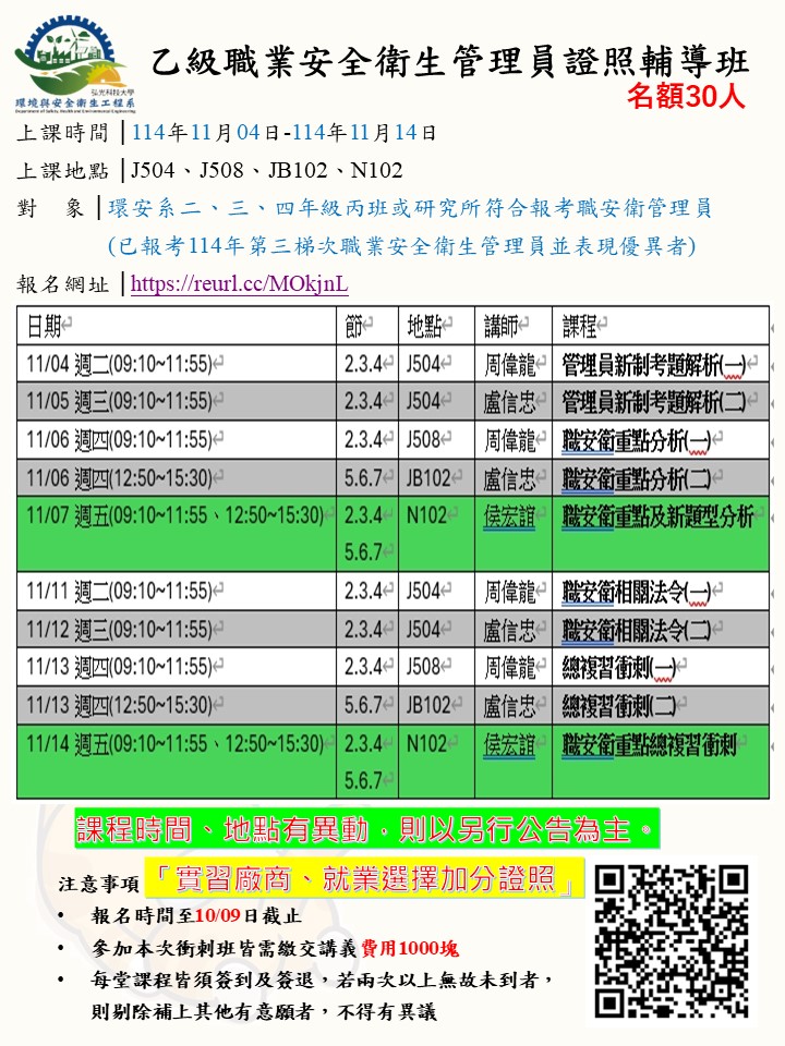 環境與安全衛生工程系(所) Department of Safety, Health and Environmental Engineering